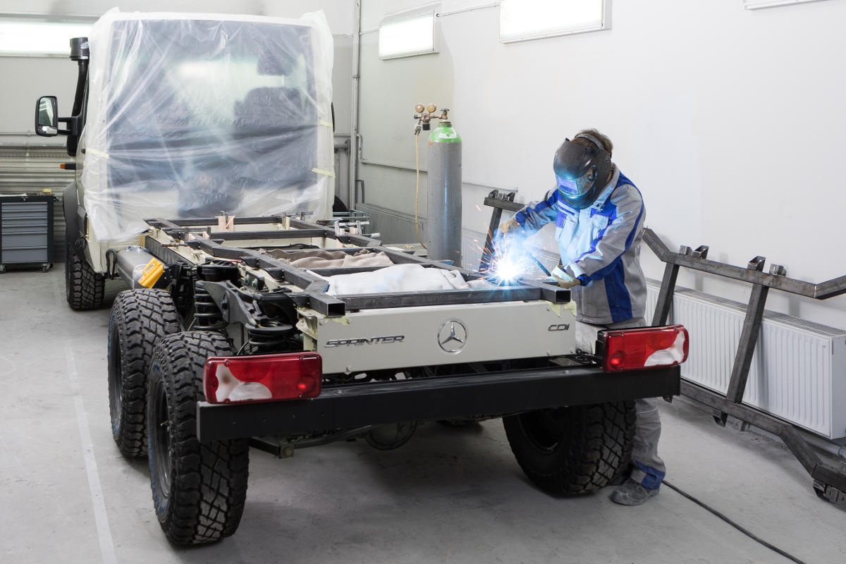 Once you have decided on the chassis, we plan all necessary and useful reconstructions and modifications. Depending on the desired cabin and requirements, we select the required mountings for the cabin. We either choose a fixed body structure where the cabin is firmly attached to the chassis or a flexible bearing useful especially for off-road vehicles.