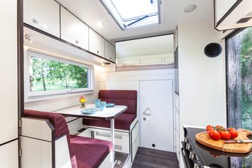 Most often, the alcove is used as bed for two persons which allows a spacious feeling even in a compact vehicle.