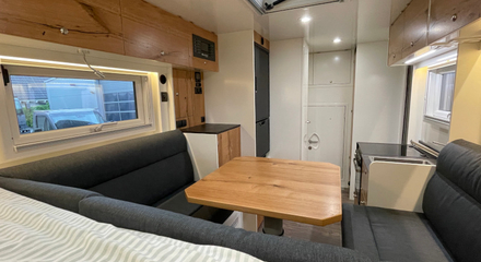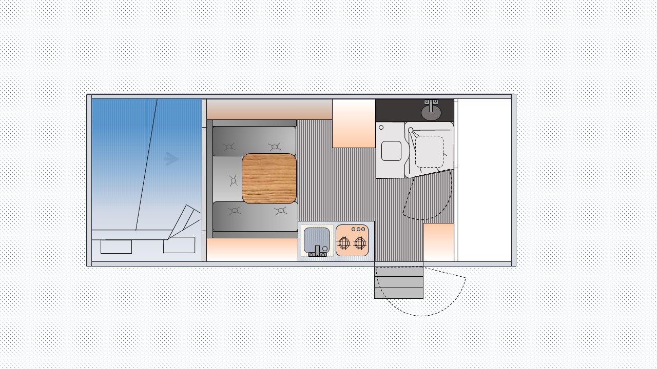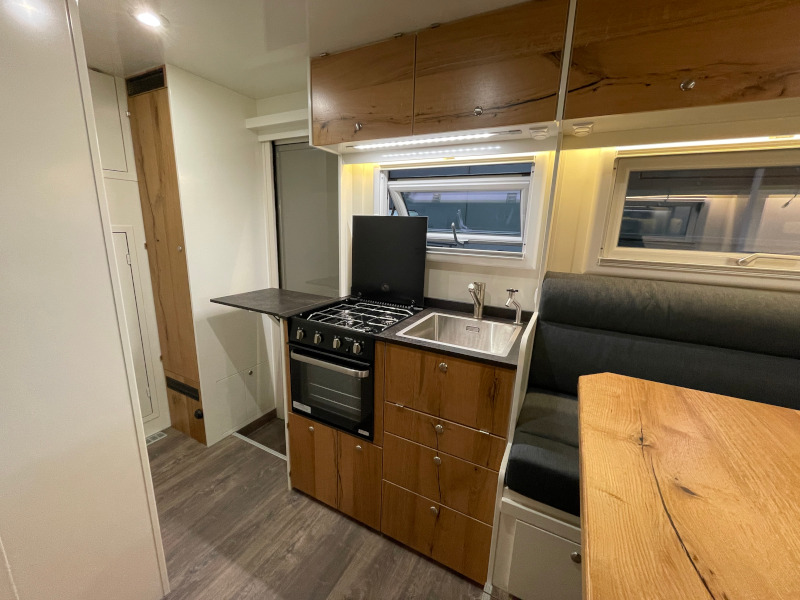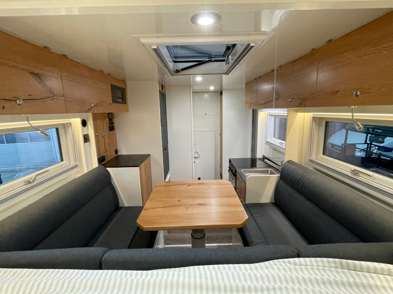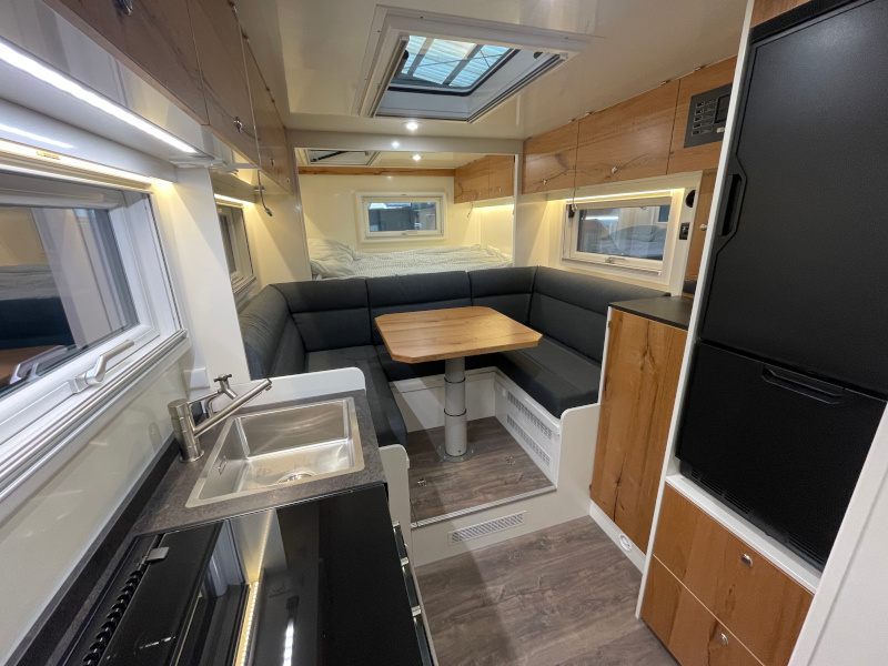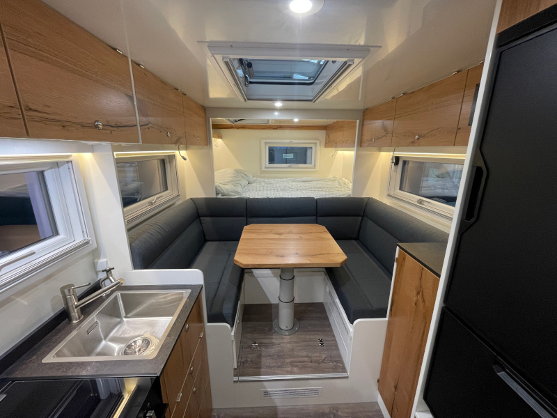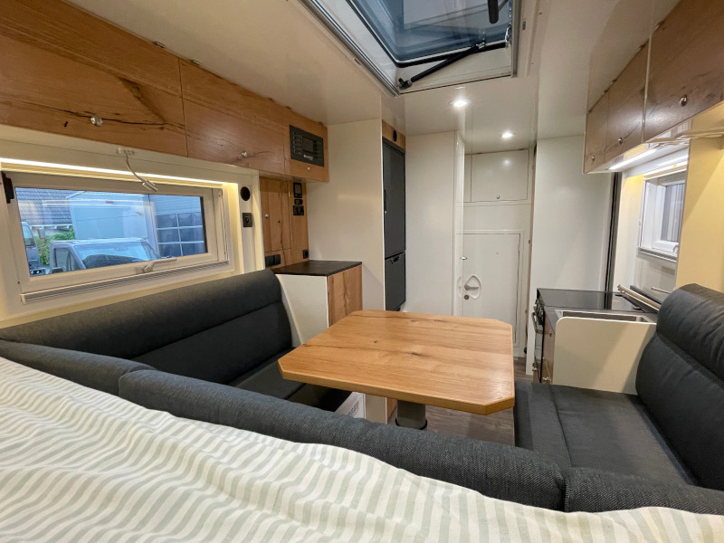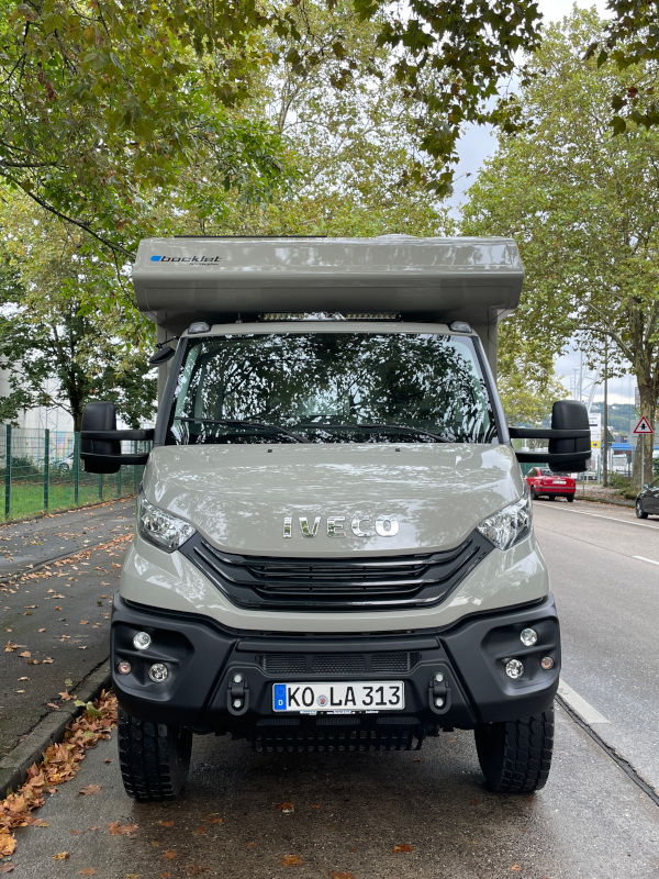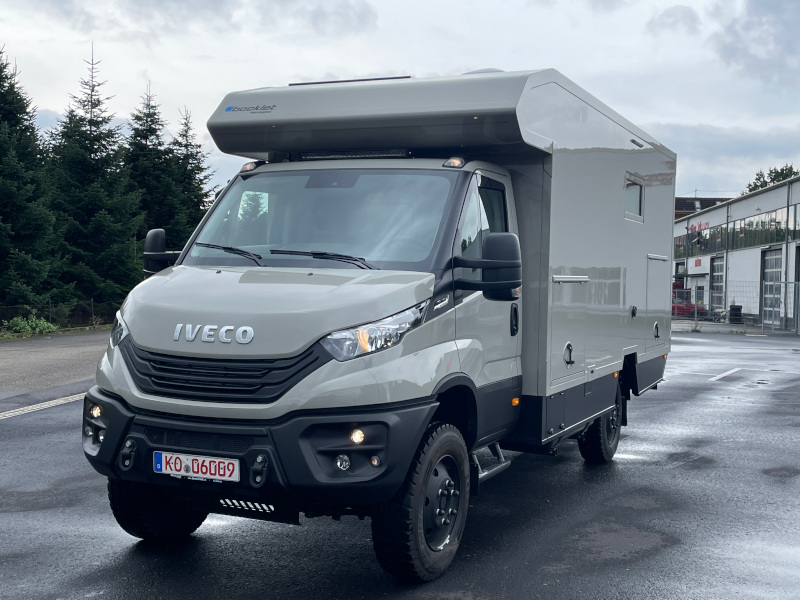 Der Dakar 737/2 ist ein Bocklet Fernreisemobil auf dem Fahrgestell eines Iveco Daily 4x4 mit langem Radstand. Durch die große Aufbaulänge entsteht ein schönes Wohnkonzept. Im Heck befindet sich eine große abgesenkte Garage für die Mitnahme eines Motorrades, Roller oder Fahrräder. Darüber ein Querschläfer Bett mit Fenstern zur Seite und nach hinten. In Fahrtrichtung nach vorne schließt sich die gemütliche Sitzgruppe an. Die Naßzelle mit integrierte Dusche sowie die Küchenzeile befinden sich vorne im Aufbau. Der Stauraumalkoven über dem Fahrerhaus bietet weiteren Platz für Ausrüstung und Vorräte. Ein Fahrzeug, das durch Handling und Nutzen zu ausgedehnten Reisen in die Welt einlädt...