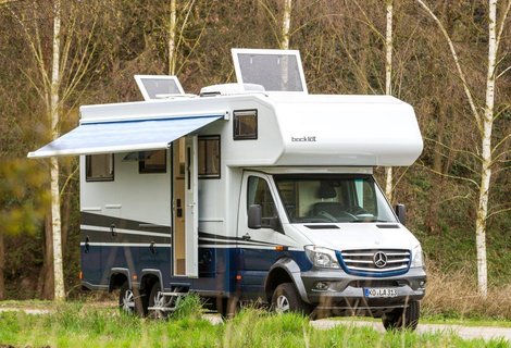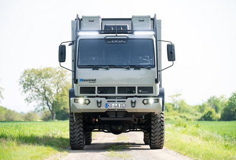 Bocklet Dakar 800 -Fernreisemobil auf Basis MAN.Prägend für das von uns umgesetzte Grundrisskonzept sind der vordere, großzügige Wohnbereich mit Sitzgruppe, Küche und Bad. Im hinteren Teil des Aufbaus findet sich der zweite, durch eine Tür abtrennbare Raum mit Bett, Dusche und optionalem…